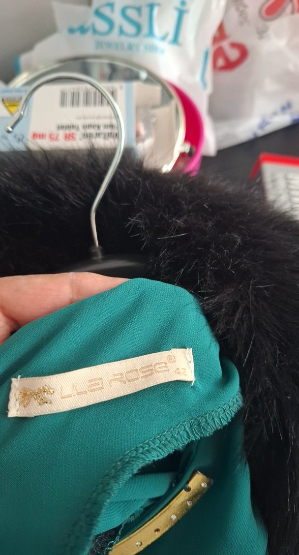 Kadın Turkuaz Uzun Suni Kürk Detaylı Elbise