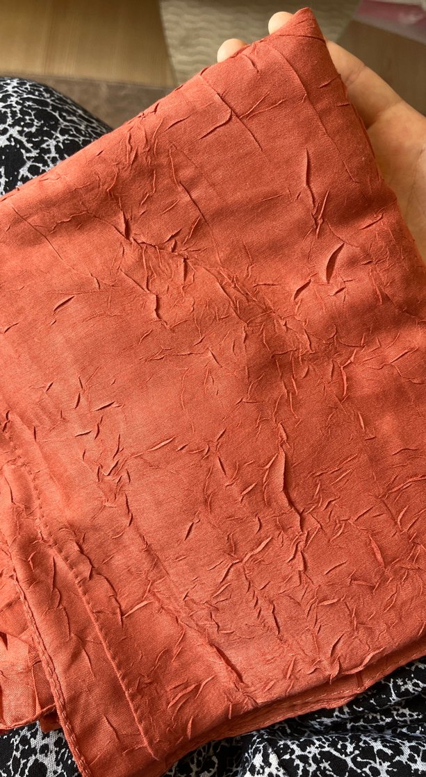 Kadınlar için kahverengi parlak keten kumaştan, drapeli bohem tarzda şal. Moda öncüsü ve avangart stilleri yansıtır.