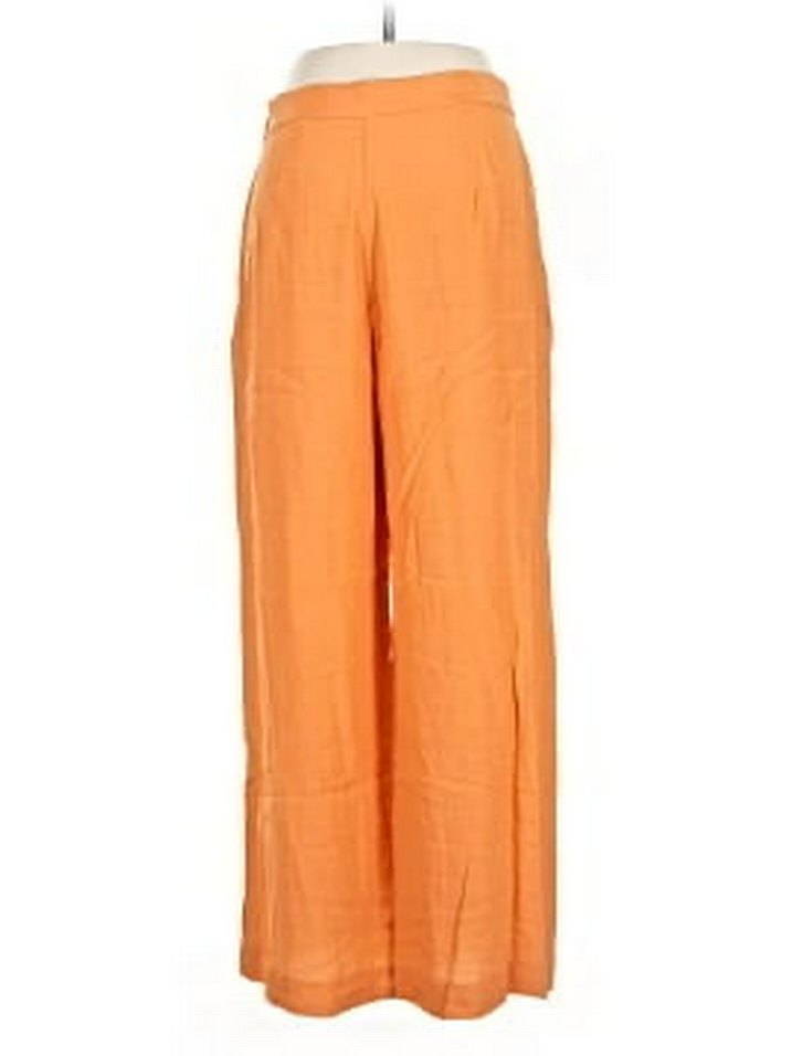 Kadın Turuncu Keten Pilili Salaş Pantolon