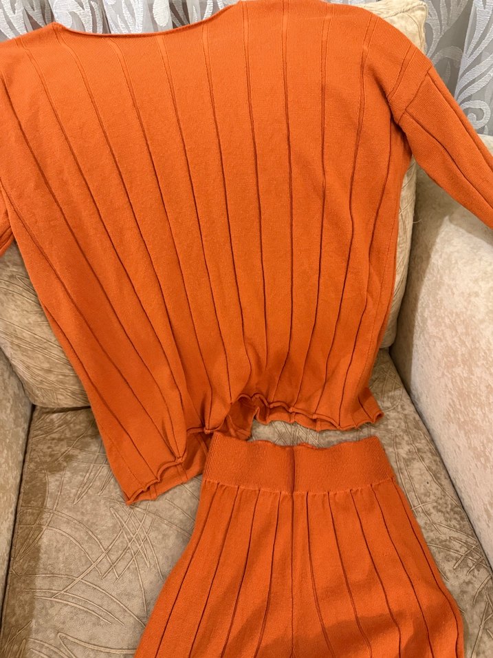 Kadın Turuncu Örgü Mini Triko Kazak pantolon takım