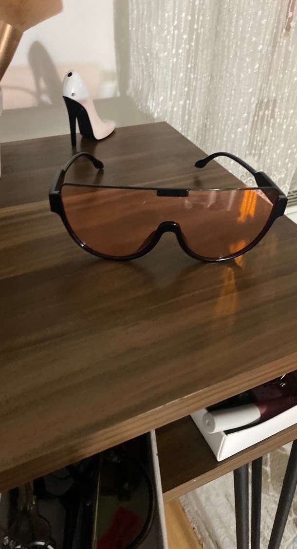 Kadınlar için kahverengi şeffaf lensli, minimalist ve street wear tarzında, avant-garde görünüm sunan gözlükler. ️
