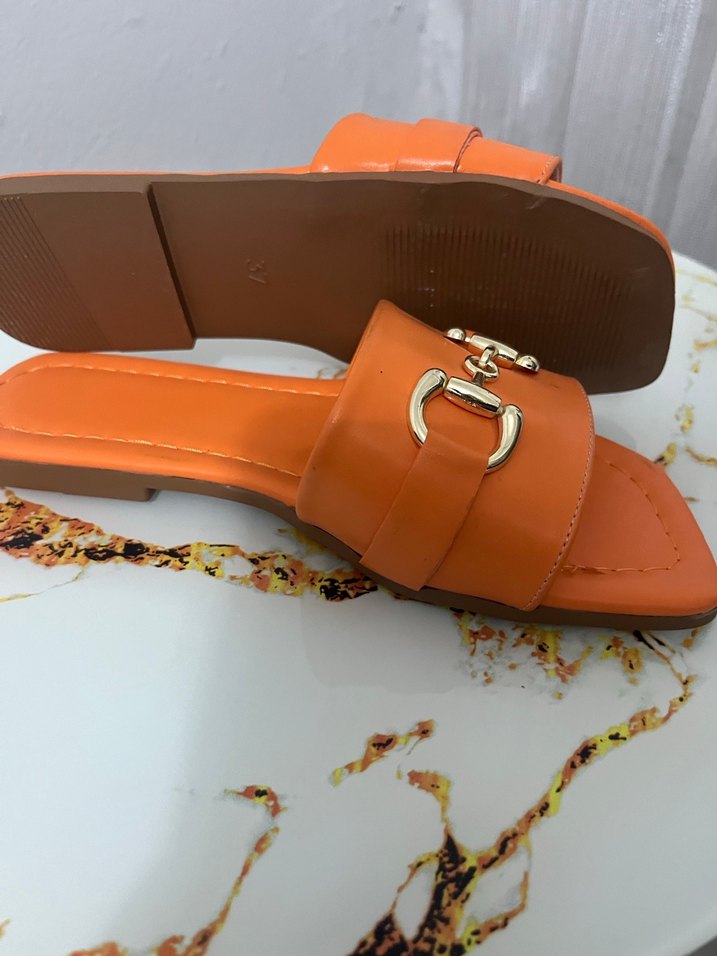 Kadın turuncu Tokalı Blok Topuk Terlik