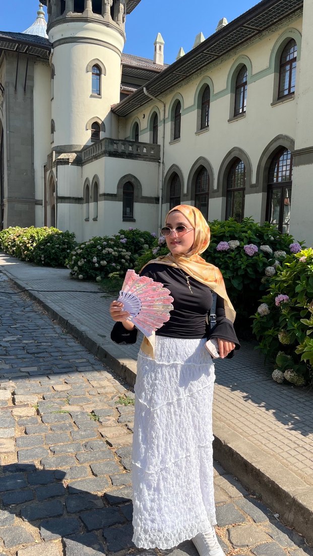 Kadın uzun beyaz etek