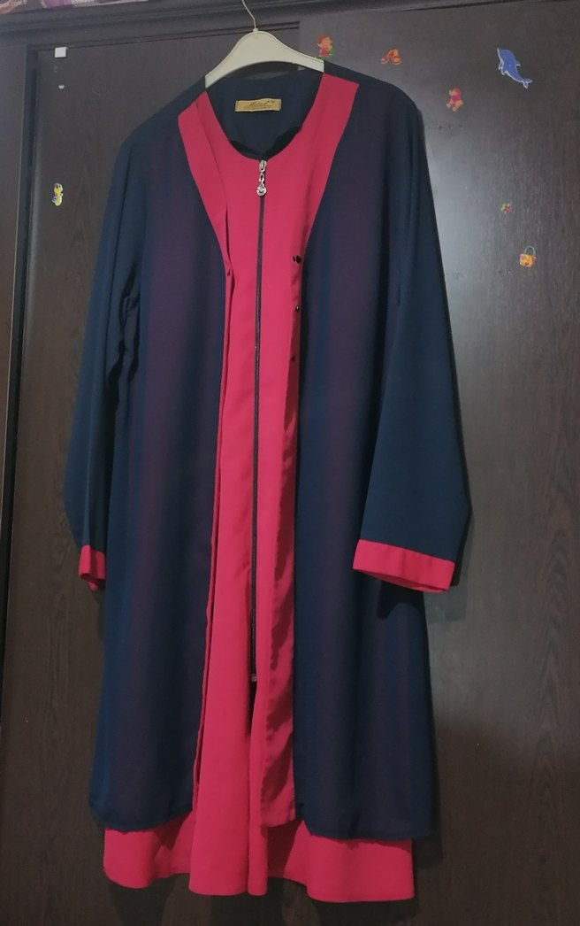 Kadınlar için yazlık, uzun kollu, lacivert sade ve desen içermeyen klasik tarzda tunik pardesü. İki kol arası 58 cm Boy 100-102 cm civarı