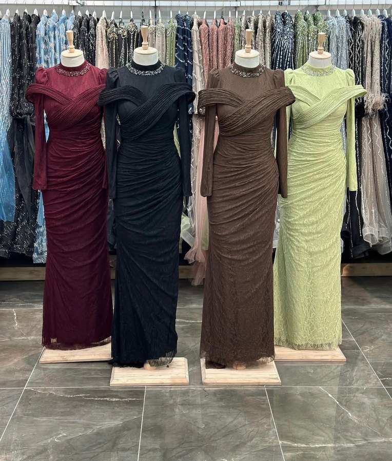 Uzun kollu, kayık yaka ve drapeli tasarıma sahip uzun abiye elbiseler. Koyu çok renk seçeneğiyle, düğünler için uygun, regular fit. kiralık fiyatı 1300 şal dahil satılık fiyatı 4000 ✨