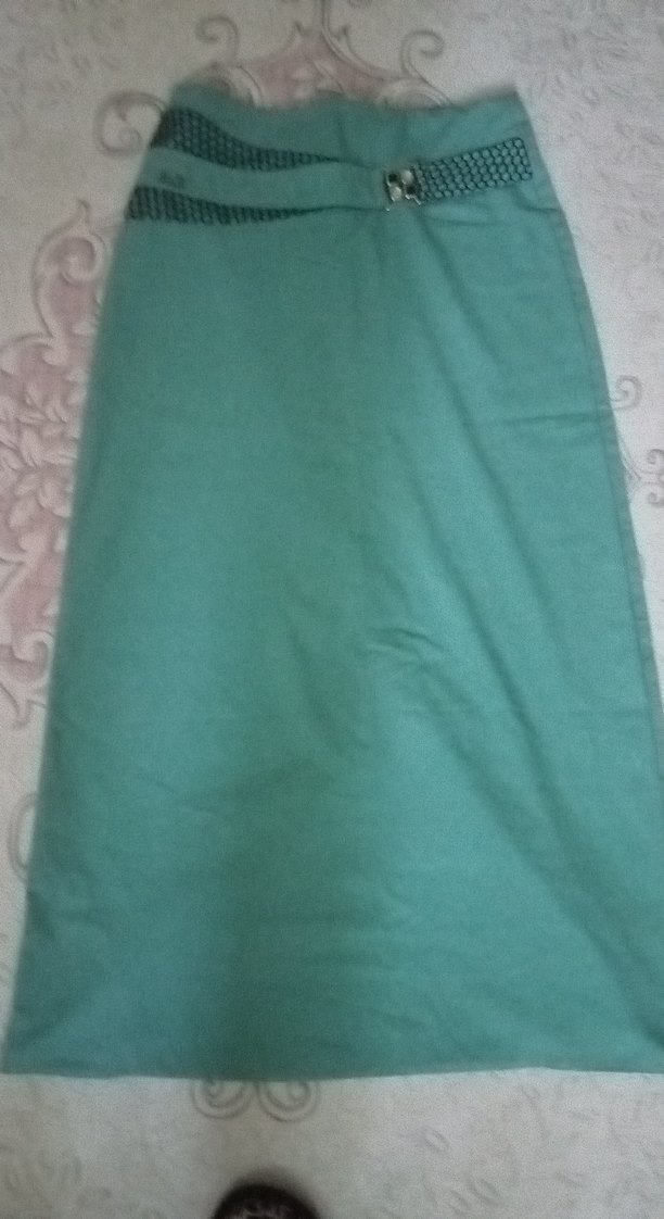 Kadınlar için uzun, drapeli tasarıma sahip, düz yeşil renkte ve rahat kesimli sentetik kumaştan yapılmış etek.