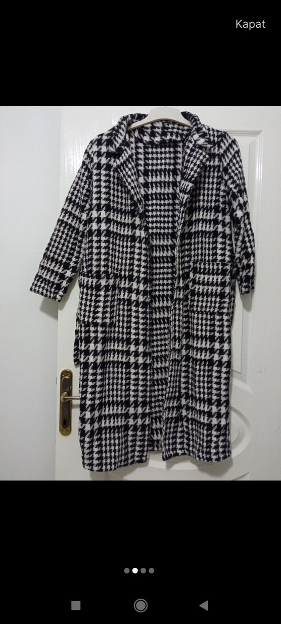 Kadın uzun kaban, düğmeli ve kesik yaka detaylıdır. Uzun kollu, regular fit ve gri renkte, sentetik kumaştan üretilmiştir. Günlük sokak stili için uygundur.