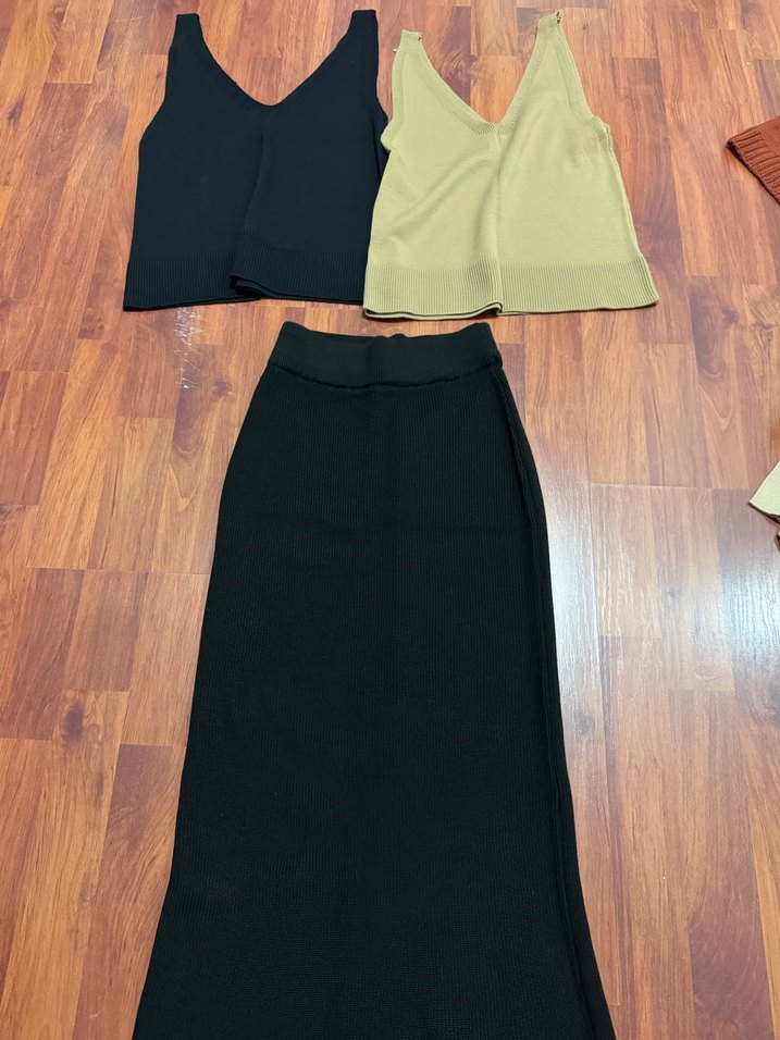 Kadın Uzun Fit Siyah Etek 3lü Kombin