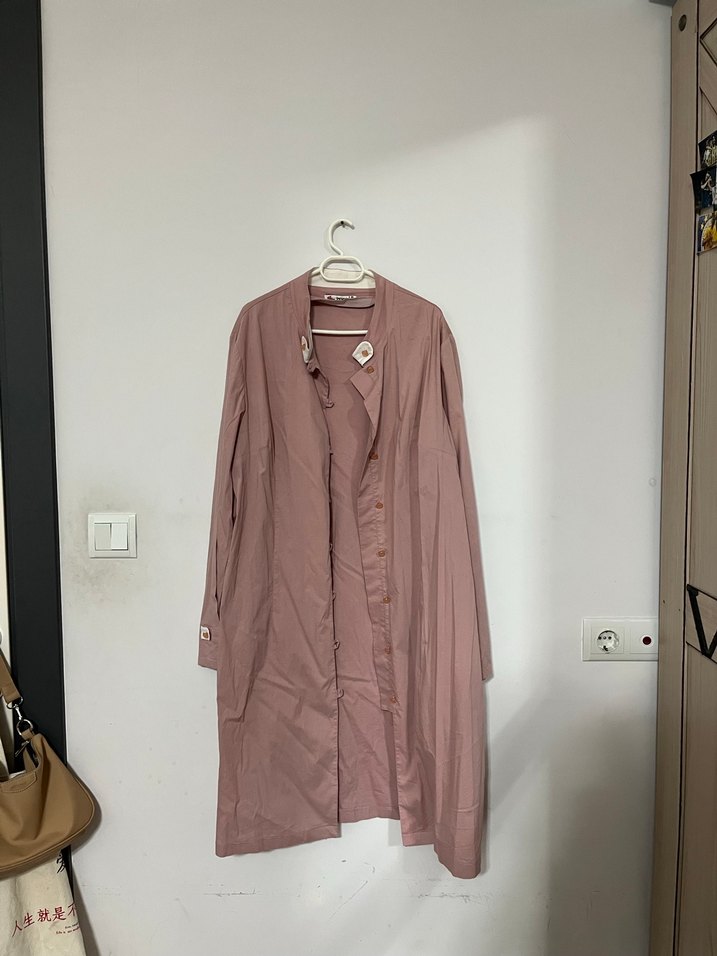 Bu bej uzun kadın kaban keten kumaştan, düğmeli ve bol kesimdir. Uzun kollu ve yakası kesik yakalıdır, minimalist ve normcore tarzına uygundur. Günlük kullanım için idealdir.