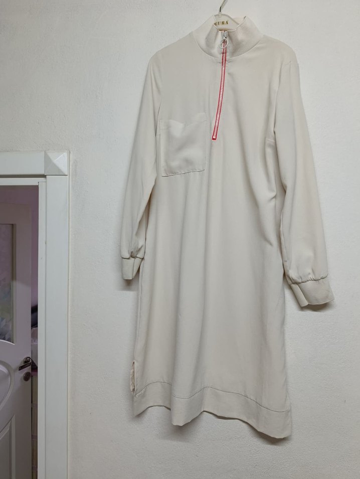 Kadınlar için uzun, yüksek yakalı ve fermuarlı ön detaya sahip gri spor tunik. Rahat kesimi ve düz deseniyle günlük kullanıma uygundur.