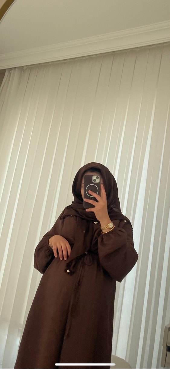 Bu kadın elbisesi, kahverengi renkte, kapüşonlu ve uzun kollu salaş bir kesime sahiptir. Minimalist, sokak tarzı ve desensiz olup uzun boydadır. Hamilelik için Rahat.