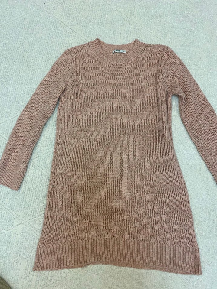 Açık pembe renkli, crew neck yakalı ve uzun kollu triko kazak, rahat ve bol kesimiyle günlük kullanıma uygundur. Desensiz sade tasarıma sahiptir.