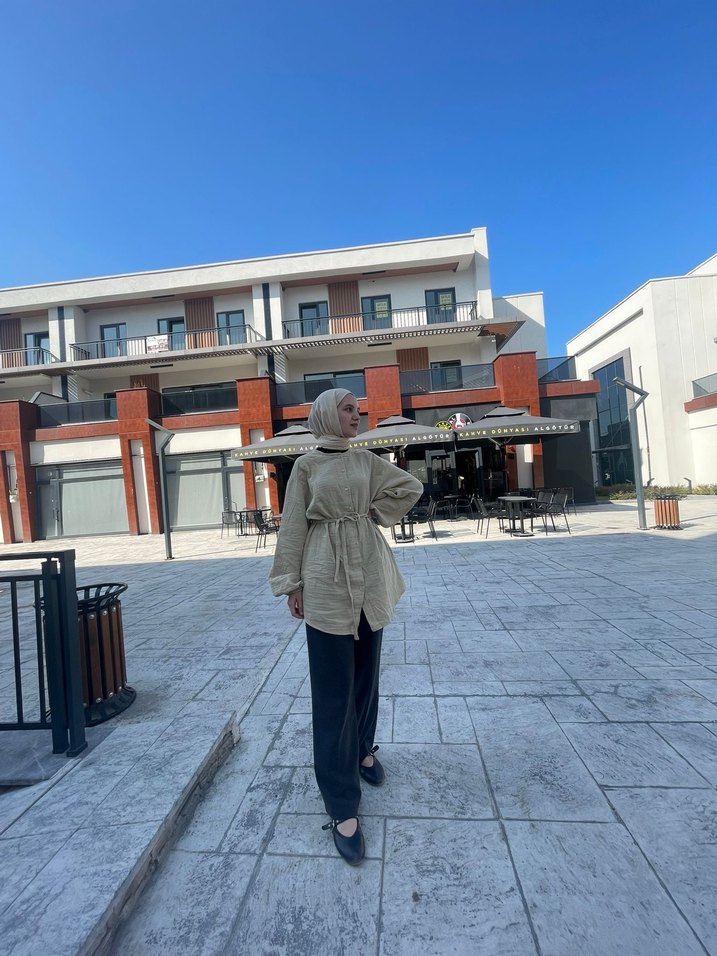 Kadınlar için, kesik yaka ve uzun kolludur. Müslim kumaştan üretilmiş, rahat kesimi ve desensiz tasarımıyla zahmetsiz şıklık sunar. Günlük sokak stilidir.