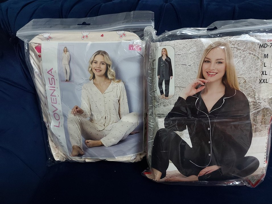 , uzun kollu ve baskılı desenli, bol kesim kısa uzunlukta kadın pijama takımı adet fiyatıdır