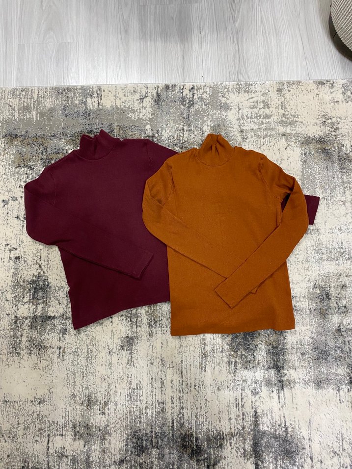Yumuşak ve sıcak kumaştan, tarçın ve bordo renklerdedir. Bana küçük oluyor yıkanınca küçüldükleri için satıyorum. Birkaç kez mont altına giymiştim.