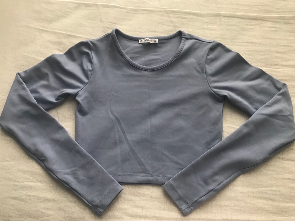 fotoğrafta gri çıkıyor ama aslında mavi M beden ama kalıbı küçük s-xs bedene uygundur.