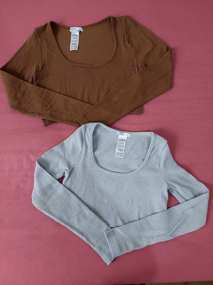 Pamuklu kumaştan, rahat kesim ve uzun kollu, pastel bej ve kahverengi renklerde kadın crop top. Günlük sokak stili için uygun.