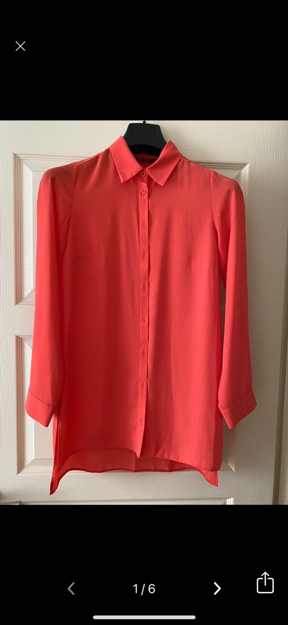 Kadınlar için uzun kollu, yakalı ve düğmeli ön kısmı olan turuncu ,şifon gömlek. 34 beden fakat 36 beden ile uyumlu .Salaş kesimi ve midi boyu ile ofis için uygundur.