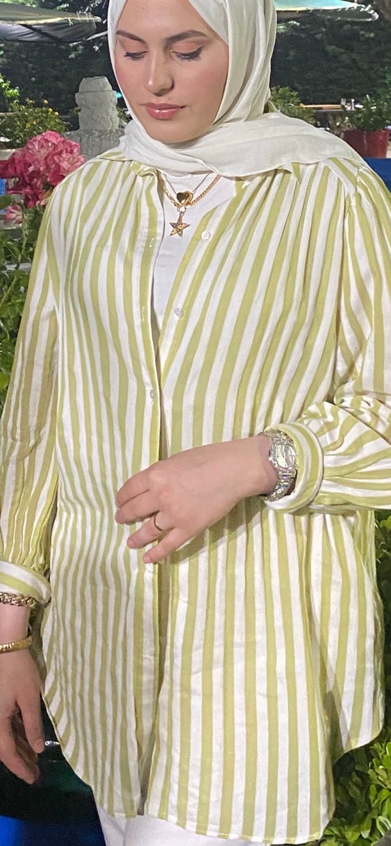 Kadınlar için salaş kesim, yakalı ve uzun kollu gömlek. Açık haki tie-dye desenli, düğmeli kapamalı ve yumuşak sentetik kumaştan üretilmiştir. Günlük rahat sokak stili için uygundur.