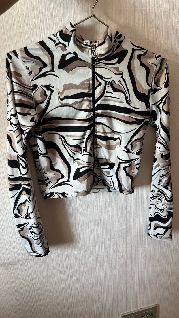 Kadın Uzun Kollu Fermuarlı Batik Desen Bluz