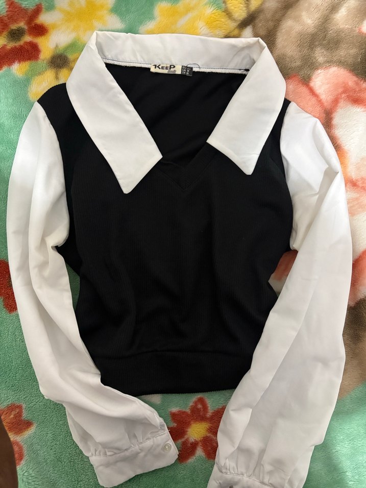 Kadıniçin yakalı, uzun kollu, düğmeli ve sentetik kumaştan yapılmış, sade ve dar kesim bluz. Trendy günlük stil için uygundur. Marka temsili