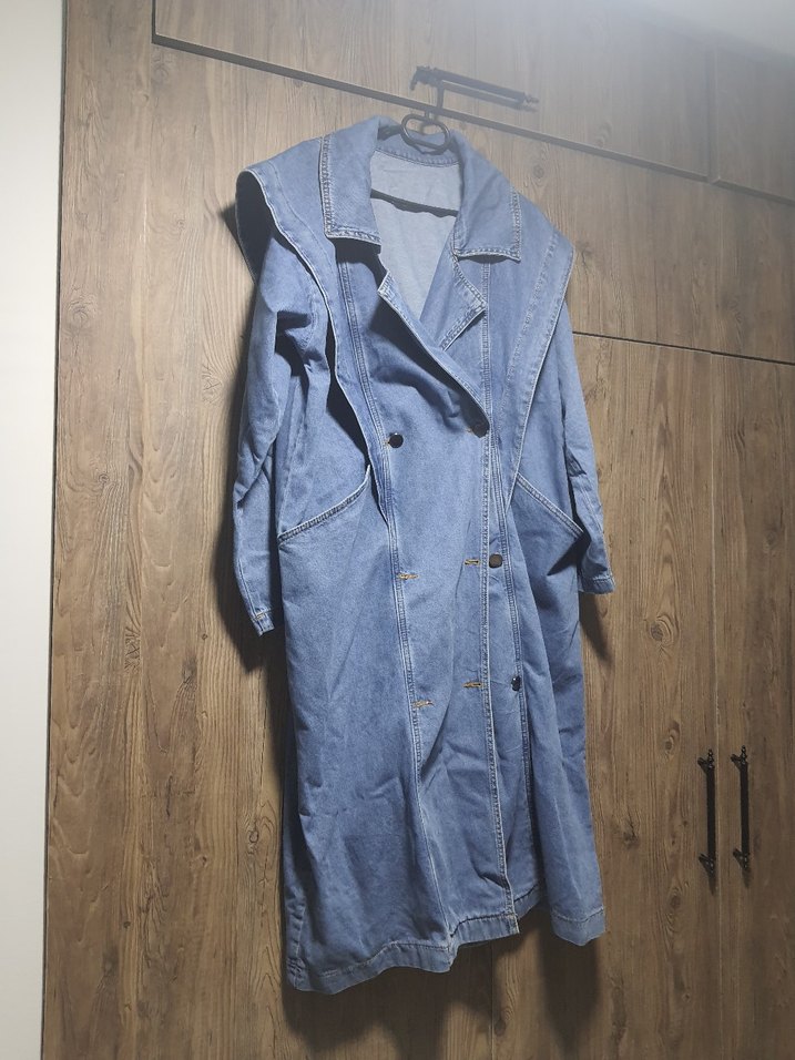 Kadın Uzun Mavi Denim Ceket