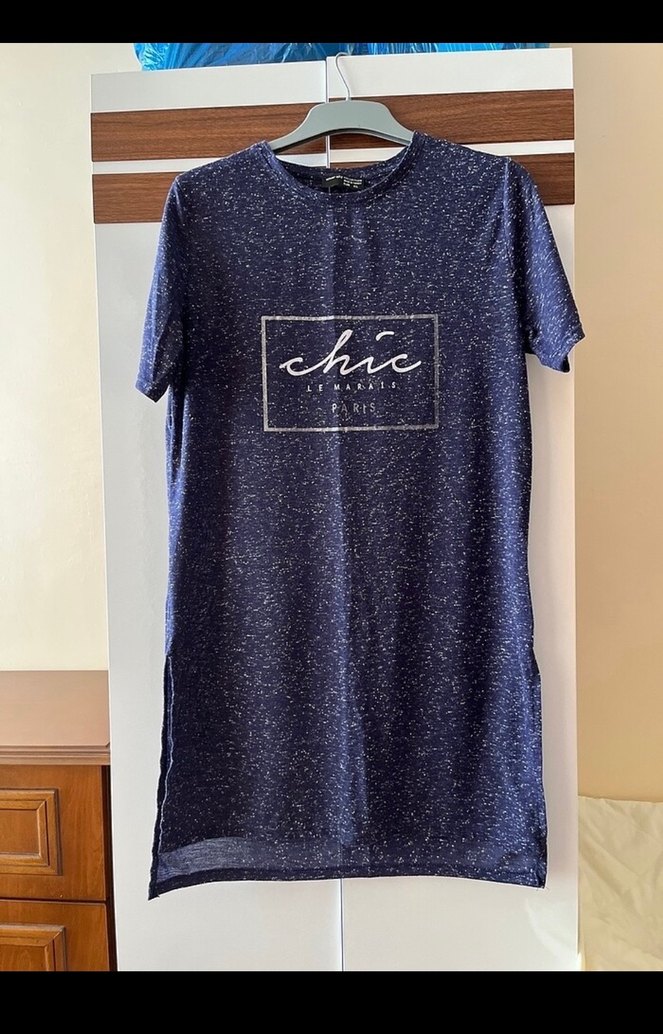 Yanları yırtmaç detaylı uzun T-shirt.2-3 kez giyildi.Ölçü:Boy:89 cm-İki kol arası 52 cm.L bedene de uyumlu.