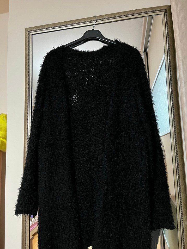 Kumaşı yumuşak batan ya da acıtan cinsten bir tüyü yok Uzun tüylü hırka