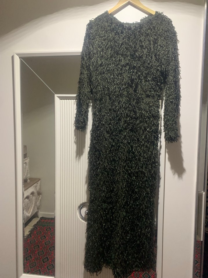 Kadın Uzun Yeşil Kürklü Triko Elbise