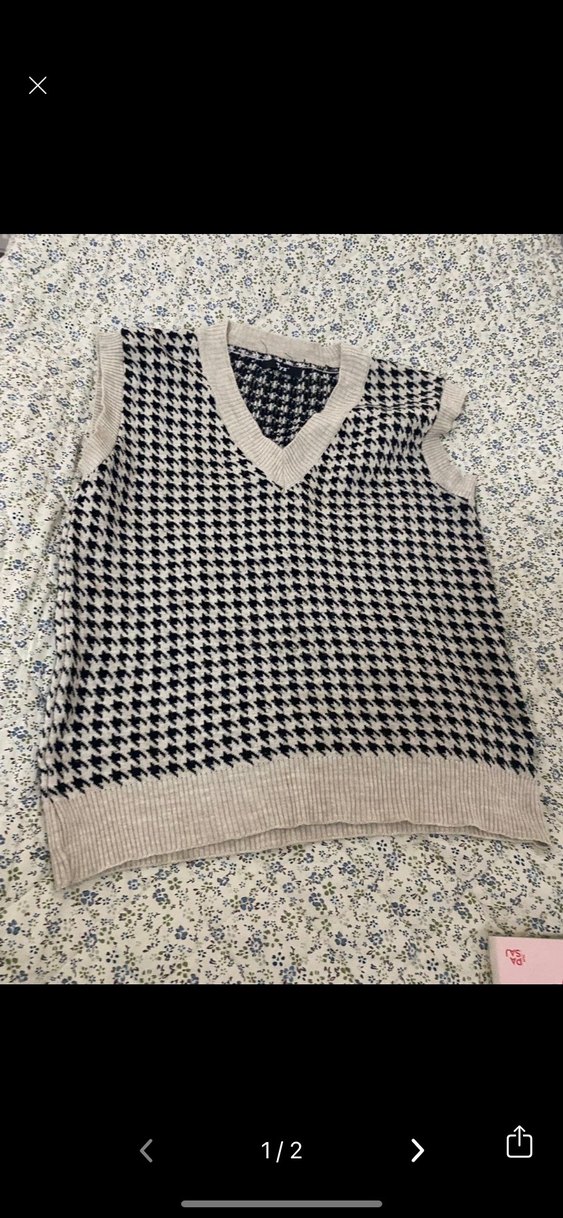 V yaka, kolsuz, gevşek kesim triko süveter. Siyah beyaz kaz ayağı deseniyle rahat ve şık görünüme sahip.