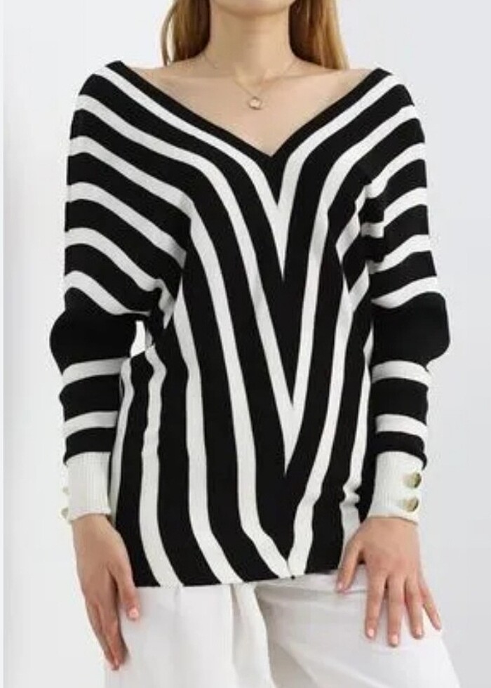 Kadın kemik onu ve arkası V yaka çizgili kazak