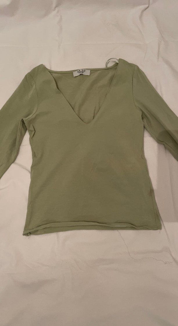 V yaka ve uzun kollu, sade ve şık kesime sahip haki renk kadın bluz, günlük kullanıma uygundur. Minik bi dikiş söküklüğü vardır