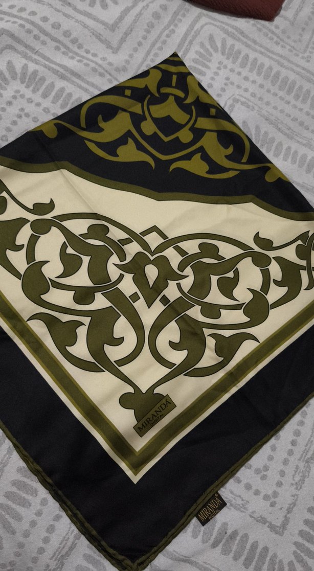 Kadınlar için vintage desenli, haki tonlarında, ipek görünümlü, drapeli şal. Sade ve geleneksel tarzda, zarif dokunuş sunar.