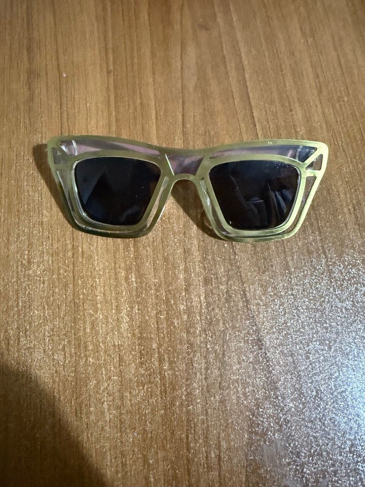 Parlak haki renkte, şeffaf çerçeveli, avant-garde vintage tarzında kadın güneş gözlüğü. ️