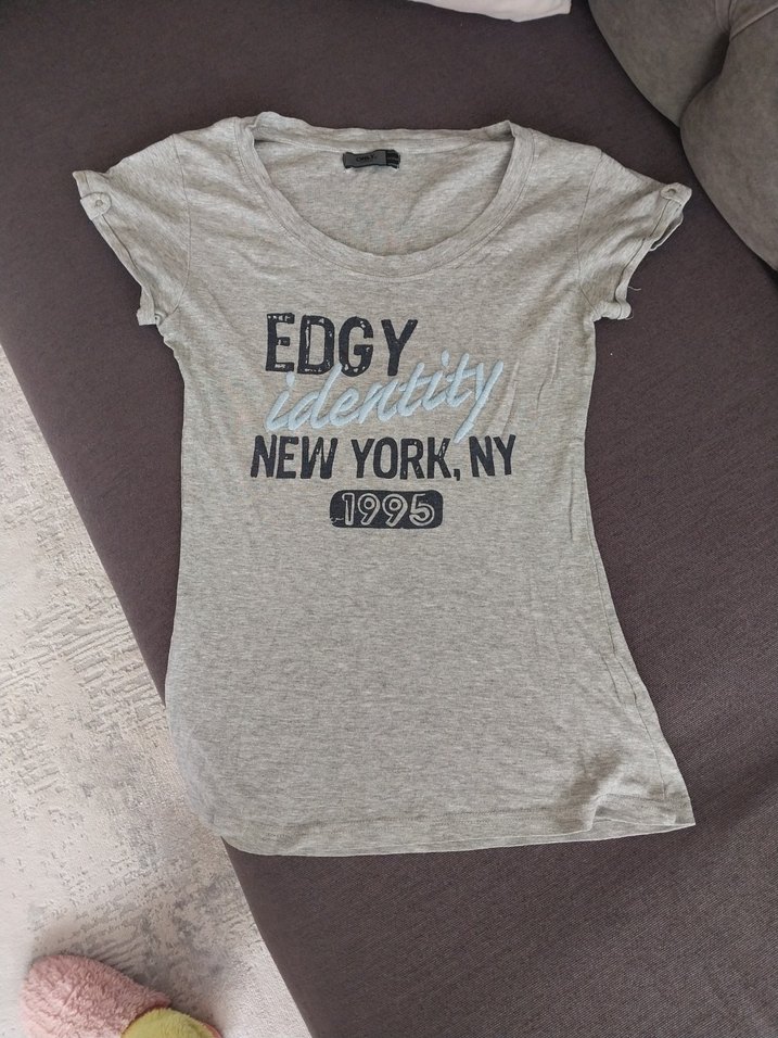 son resimde kolunda minik bi leke var başka kusuru yoktur Gri renkli, baskılı ve kısa kollu bu tişört, crew neck yakaya sahiptir. Sokak stili için uygun, normal boy ve vücuda oturan kesimdedir.