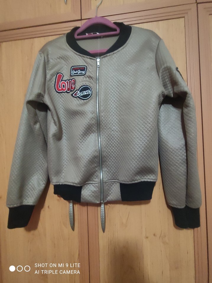 Uzun kollu, bisiklet yaka ve fermuarlı vizon Baskılı yamalar casual tarzı tamamlar. Günlük kullanım için uygundur.Tam boyu 54 cm dir kapalı halde 46 cm kol 55 cm