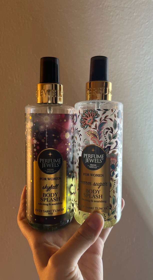 Kadınlar için Skyfall ve Warm Sugar adlı iki Perfume Jewels vücut spreyi Fotografta gözüktüğü kadardır. İkisi beraber fiyatidir