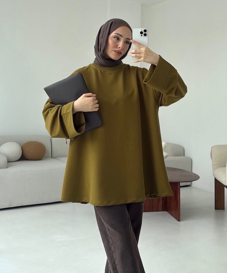 Kadın yağ yeşili Oversize Midi Tunik