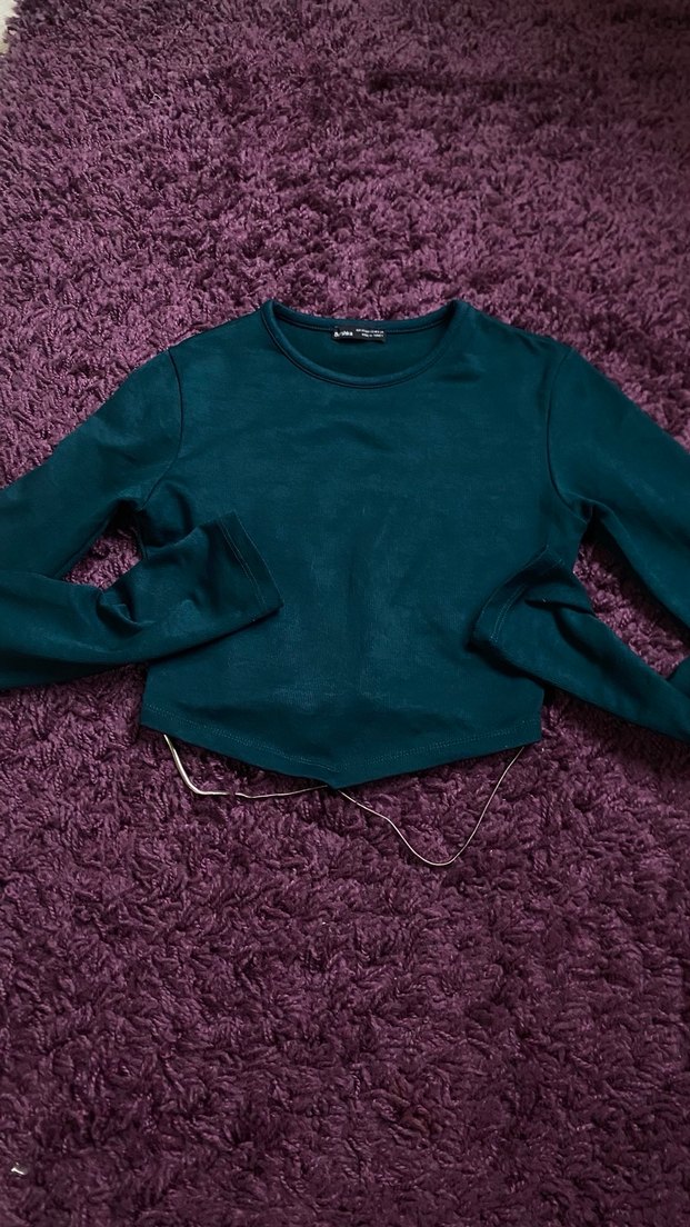 Kadın yeşik Uzun Kollu Basic crop bluz