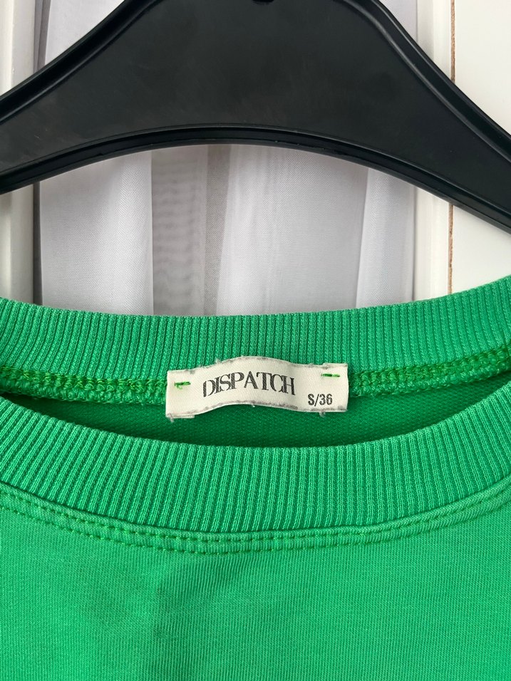 Yeşil renkli, uzun kollu, fermuarlı kadın sweatshirtü. Sentetik kumaştan, baskılı ve rahat kesim, günlük kullanıma uygun sokak stili. Beden S/36.