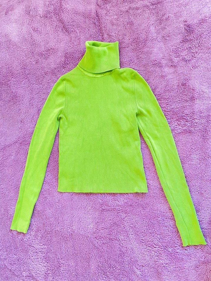 Kadınlar için ince, boğazlı ve uzun kollu, yumuşak ve sıcak dokuma kumaştan yapılmış, pastel yeşil renkli sade ve fit kesim kazak.