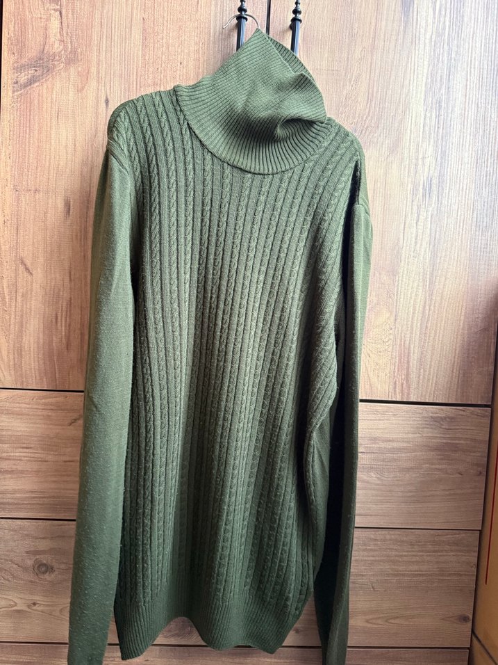 Yeşil renkte, yün kumaştan, boğazlı ve uzun kollu, rahat kesimli triko kazak. Örgü dokusu ve midi boyu ile günlük rahat kullanıma uygundur.
