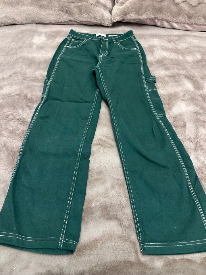 Kadın Yeşil Bol Kesim Kot Pantolon