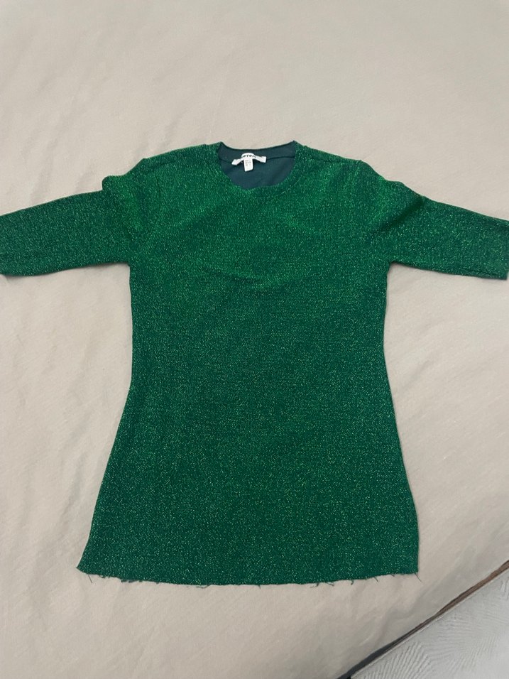Kadın Yeşil Dar Kesim Triko Kazak