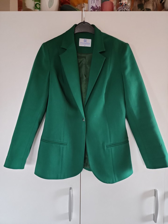 Kadın yeşil, düğmeli, normal uzunlukta midi ofis ceketi. Notched lapel yakalı, uzun kollu, parlak sentetik kumaştan, klasik şıklık sunar. göğüs 47 bel 39 omuzdan boyu 65 kol boyu 55 kol ağızı 13 sırt 37 sayılı kullanıldı tertemiz yeni gibi