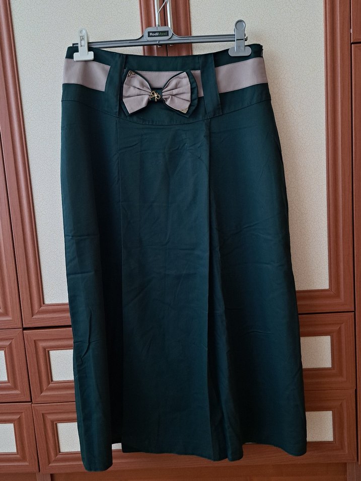 Kadın uzun boy, normal kesim, yeşil renkte sentetik kumaştan yapılmış, belinde fiyonk detaylı etek. 1 kere giyildi. Yeni gibidir.