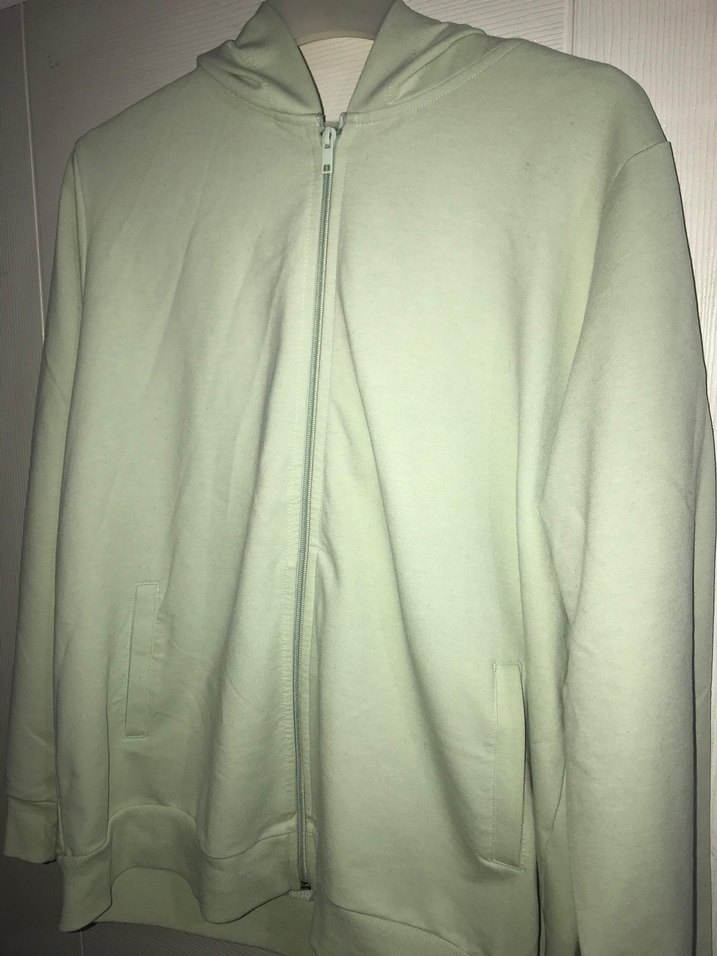 Kadınlar için pastel yeşil renkli, fermuarlı ve yuvarlak yaka uzun kollu, bol kesim midi ceket. Yumuşak ve sıcak kumaştan üretilmiştir.
