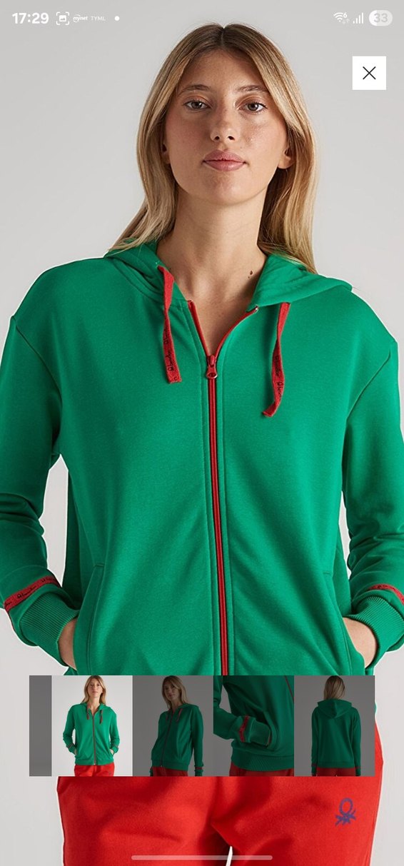 Yumuşak kumaştan, fermuarlı, yuvarlak yaka ve uzun kollu, bol kesim yeşil sweatshirt. Günlük sokak tarzına uygun. xs ama s hatta m bedene de olur