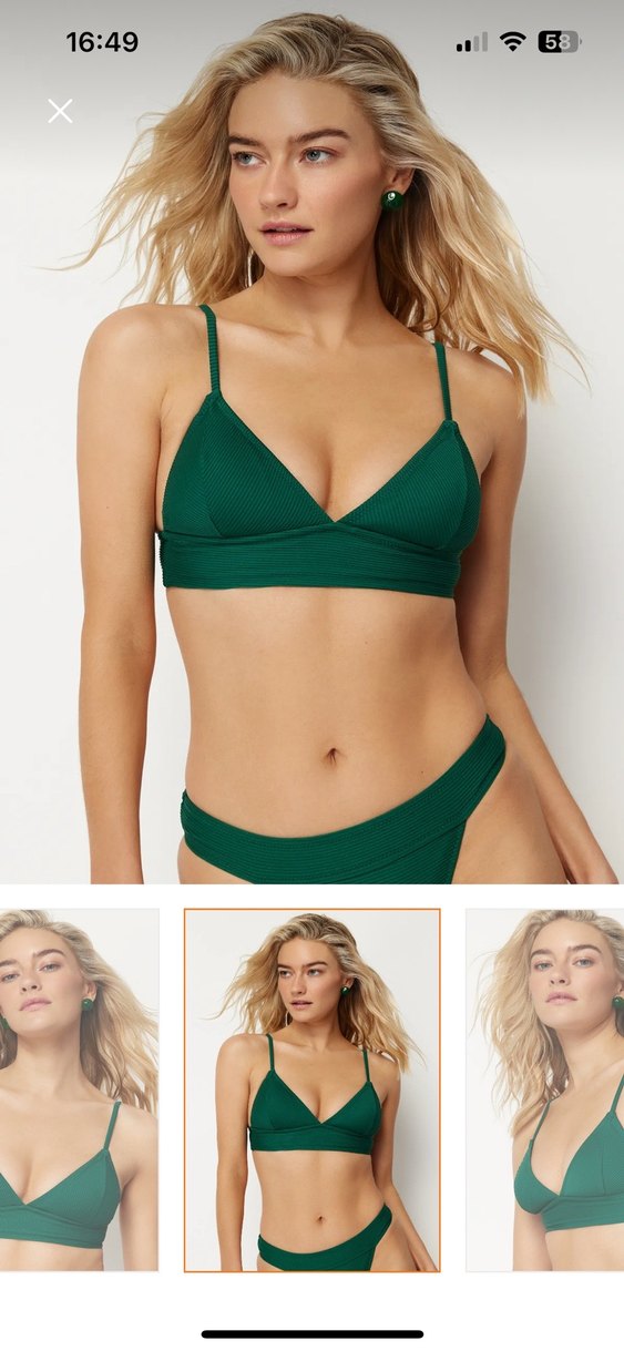 Kadınlar için ince askılı, fitted kesim ve koyu yeşil renkte bikini üstü, çağdaş ve zahmetsiz şıklık sunar.