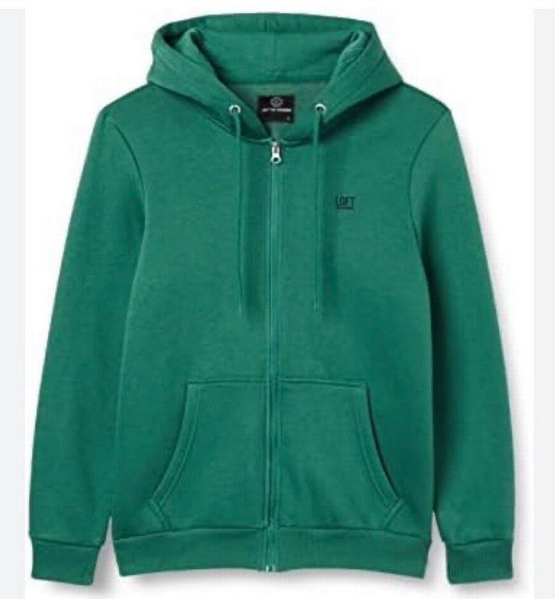 Kadınlar için koyu yeşil renkli, kapüşonlu ve fermuarlı sweatshirt. Crew neck, uzun kollu ve bol kesim, yumuşak ve sıcak kumaştan üretilmiştir. A ve M beden uyumludur.